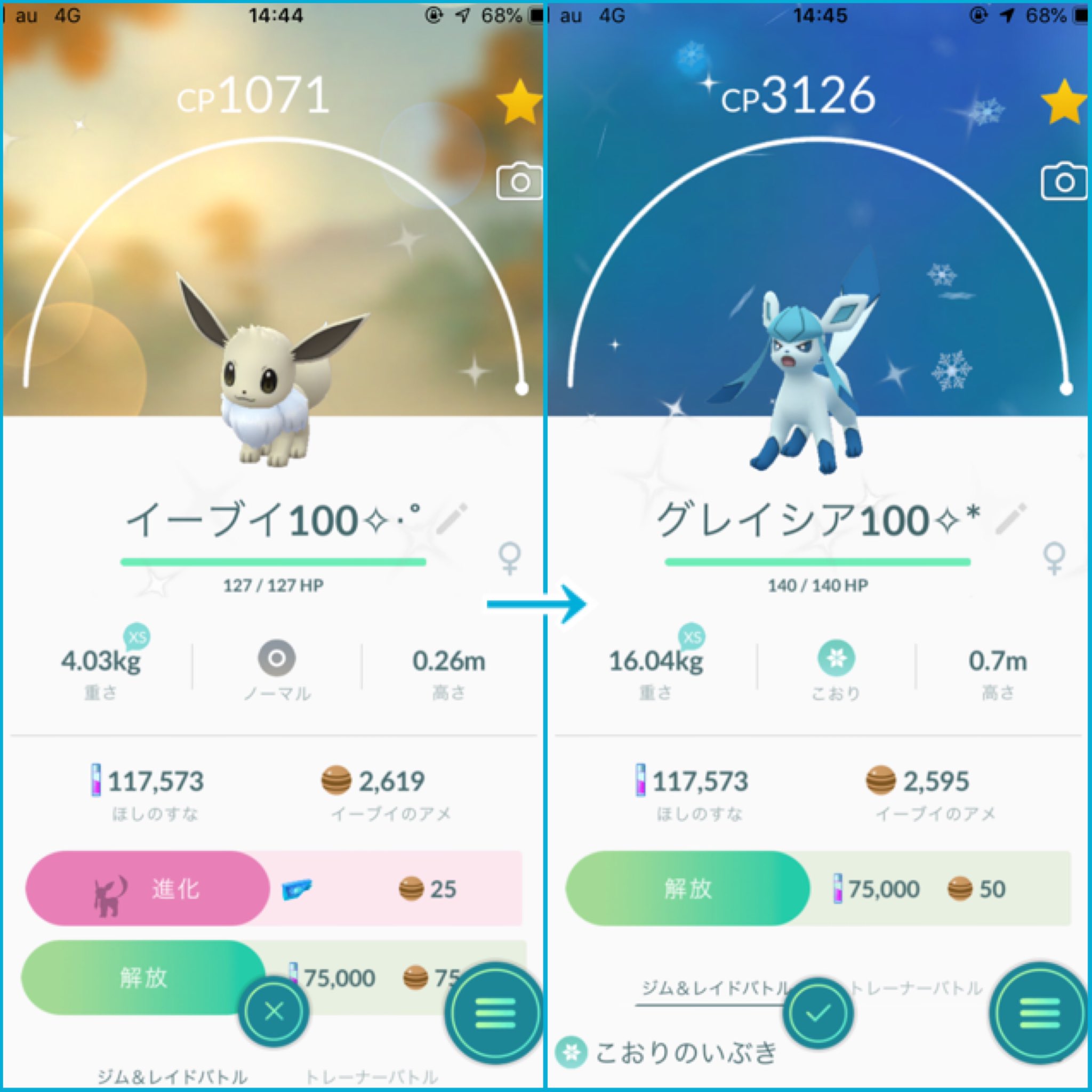 イーブイ 進化 色違い グレイシア-ぜんこくNo 471 ジョウトNoシンオウNo 170 たかさ 08m おもさ 259kg タイプ タイプ相性による弱点; ニンフィア用にお気に入りのイーブイを確保しておくべき!? 待望のグレイシアとリーフィアが実装されましたが、ニンフィア用にイーブイは取っておくべき!?実装は遠そうですが花飾りや色違いは確保しておいても良さそう!? 新しいルアーの種類と効果 今回追加されたアイスルアー